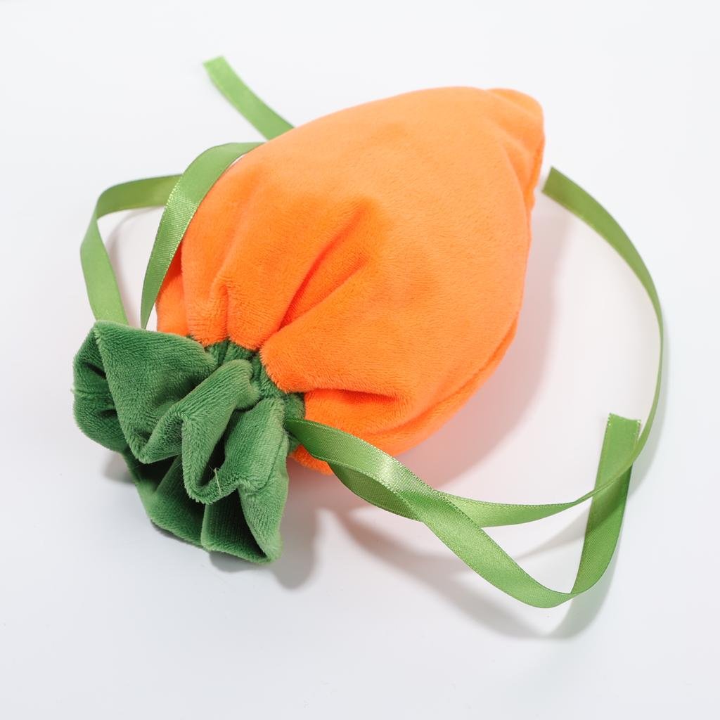 The carrot drawstring bags is made of velvet.