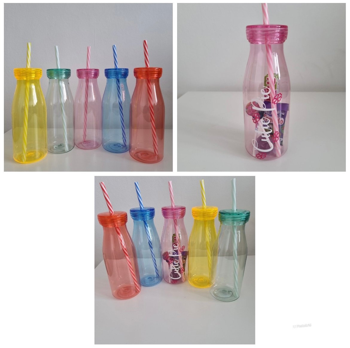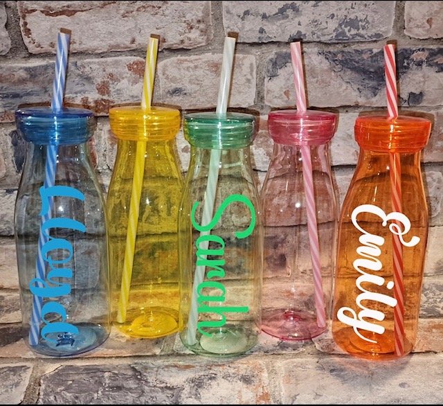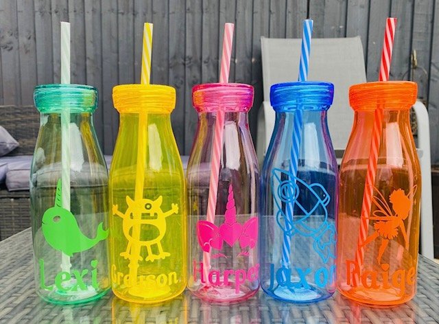 The milk bottle with a straw comes in 5 colours