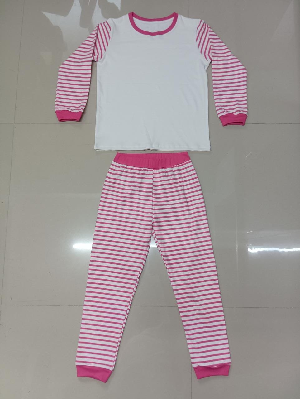 - The sleeves and pants are made of cotton and has Pink colour stripes